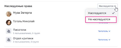 Примечание: Наследуемые права, которые были вручную изменены, продолжают отображаться в блоке «Наследуемые права».