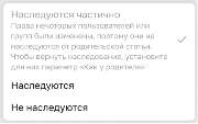 - Как у родителя (только у статей). Отображается, когда статья явно наследует права от родительской статьи. Признак от родительской статьи может быть: