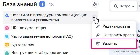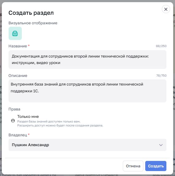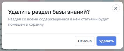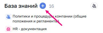 Для создания раздела необходимо нажать на кнопку плюса «» справа от заголовка База знаний.