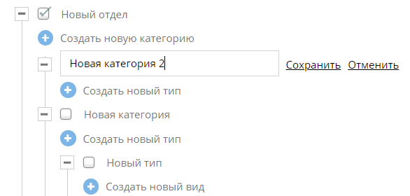 Оператору системы доступно редактирование всех Отделов, Категорий, Типов, Видов.