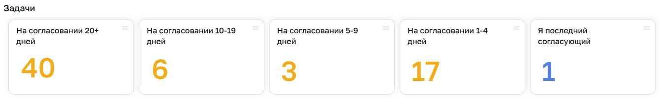 - На согласовании 1-4 дней. Отображается количество задач, в которых вы являетесь согласующими от 1 дня до 4.