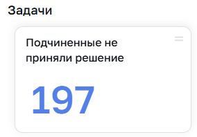 Отображается количество задач, в которых подчиненные не приняли решение по согласованию. При нажатии на него осуществляется переход в список задач, вкладка «На подчиненных» и установлен фильтр «Есть подчиненные, не принявший решение».